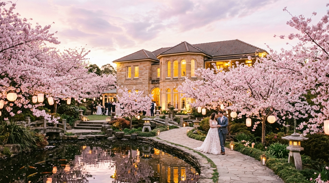 Under a canopy of cherry blossoms in Auburn Botanic Gardens, Kieran got down on one knee with a ring inspired by sakura petals. Hana said yes before he finished the question. They celebrated with champagne and called their families — Tokyo and Tamworth — before the petals stopped falling.